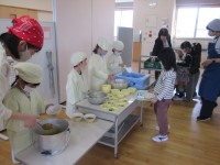 初めての給食がありました。初日からカレーライスということで、みんなとっても嬉しそうでした。給食当番さんが、とても上手に盛り付けてくれました。自分が食べられる量に調整して、食べキリンを目指しました。