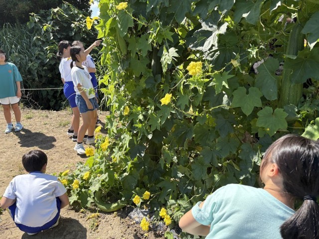 5年生では、ヘチマの雄花と雌花の観察をしました。雌花が1輪のみで探すのが大変でした。