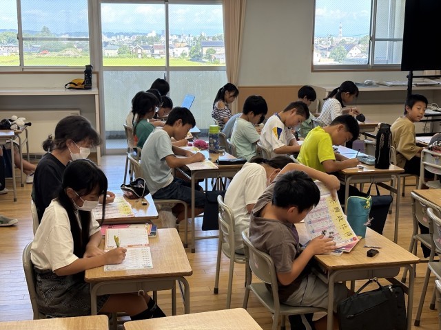 5年生では、漢字学習の仕方を確認しました。「比」の書き順を見て目を丸くする子どもたちでした。