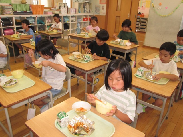 給食が始まりました。子供たちは、久しぶりの給食を喜んで食べていました。食事の量が増え頼もしい限りです。