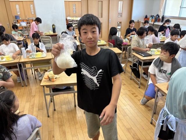 5年生 給食 公開日 2025/09/04 更新日 2025/09/04 5年生 防災の日献立で、おにぎりをつくって、いただきました。きれいな三角おにぎり、ハート形、まんまるおにぎりなどが見られました。