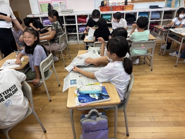 国語科では、新聞について学びました。見出しやリード文、写真など、読みやすくする工夫がたくさんありました。