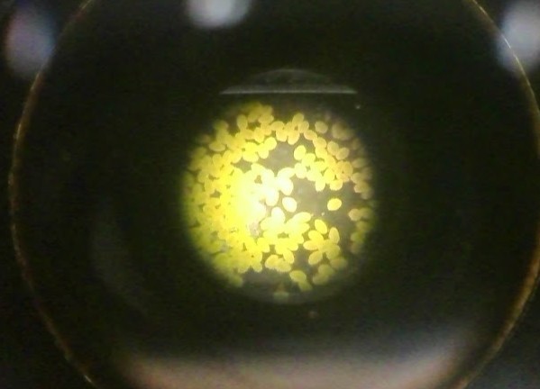 理科では、花粉を集めて、顕微鏡で観察しました。花粉が取れたことに喜ぶ様子や花粉を見て分かったことをノートにまとめる様子が見られました。