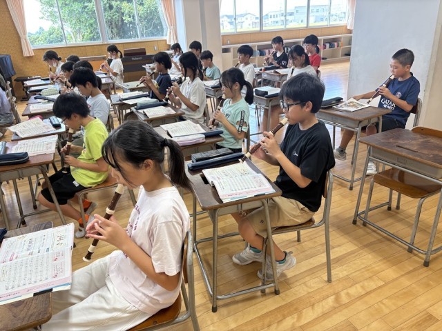音楽科では「リボンのおどり」をリコーダーで弾けるように練習しています。
