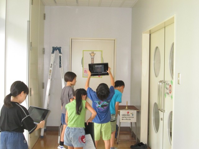2年生 国語の時間2 公開日 2025/09/08 更新日 2025/09/08 2年生 廊下の掲示物や給食室の前の掲示等から、見つけていました。また、「この空き教室にあるんじゃないの?」と友達と相談して探していました。