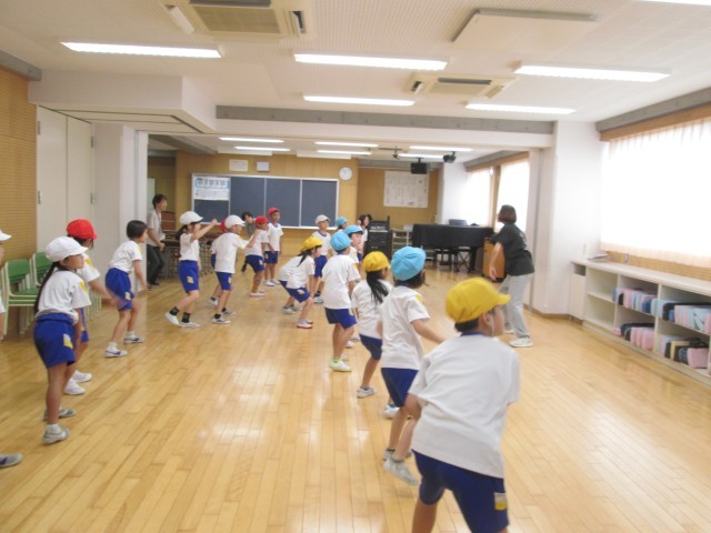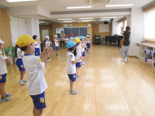 ダンスの先生にきていただき、ダンスを教えてもらいました。足のあげかたや手の向きやステップの名前などを教えてもらいました。子供たちは、楽しんで踊っていました。