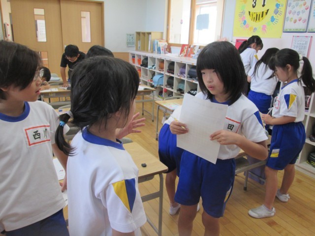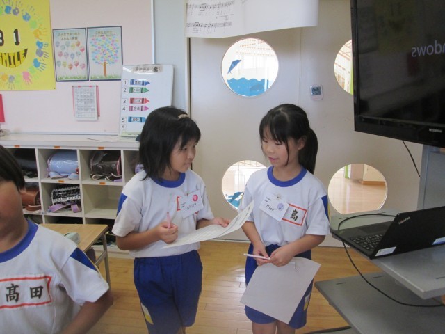 今日の外国語活動では、’What sport do you like?’の表現を使って、3年生のすきなスポーツ調べをしました。3年生では、バレーボールと水泳が人気でした。