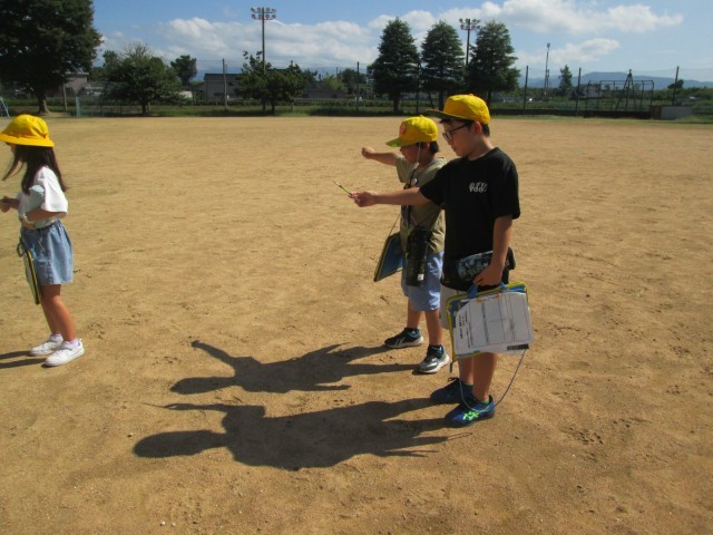 理科では、太陽とかげの学習に入りました。今日は天気が良かったので、グラウンドへ行ってかげを観察しました。国語科で習っている「かげおくり」にも挑戦しました。
