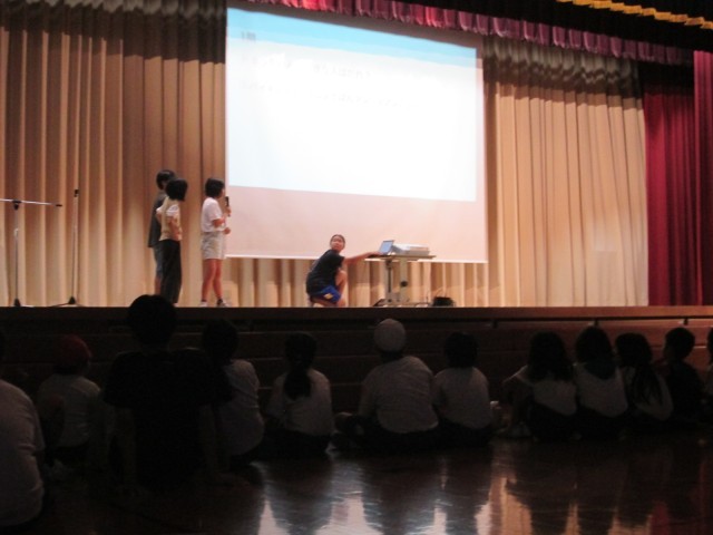 みどりのタイムに、6年生がパーティーを開いてくれました。劇やクイズなどで楽しませてもらった後、3・4年生と6年生みんなで「アンパンマンのマーチ」を歌いました。3年生は「すてきな会を開いてくれた気持ちがうれしい」「この会のために練習してくれたのだなと分かった」と、6年生への感謝の気持ちをもっていました。