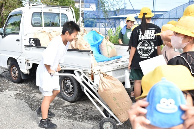 先週はライスセンター見学。今日は精米に行きました。重たいお米を協力しながら精米する5年生いいね!