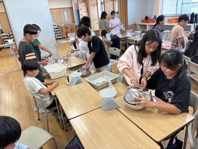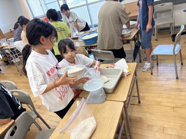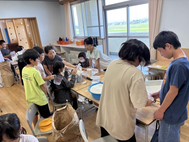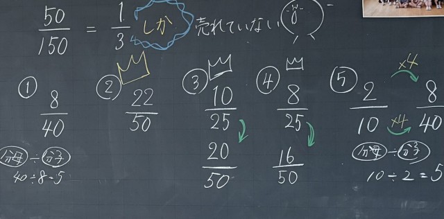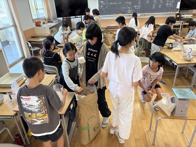 もち米の注文数とつくっているセット数を分数で表すと、「3分の1しか売れていない」と話す子どもたち。本気で自分たちのセットを多くの方に届けたいと休み時間や給食時間に宣伝を行う子どもたち。授業の後半は、もち米を袋詰めしました。米に全力5年生!!
