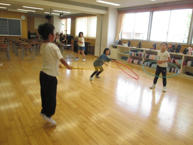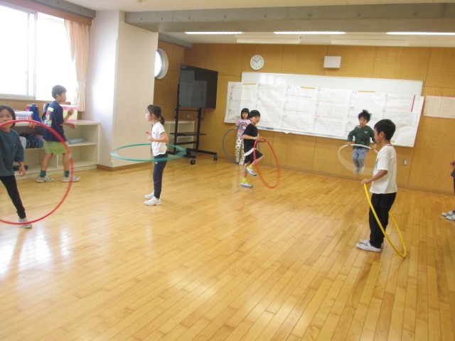 2年生 フラフープチーム2 公開日 2025/10/08 更新日 2025/10/08 2年生 フラフープチームは、腰回しや手回し、足まわしなどにチャレンジしています。できることが少しずつ増えてうれしそうな子供たちです。