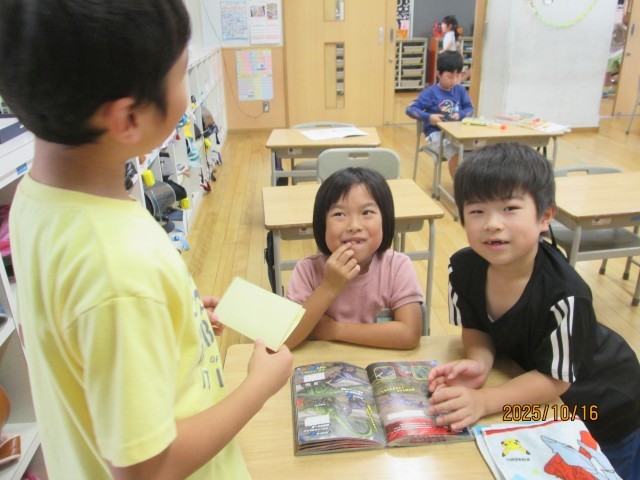2年生 休み時間 公開日 2025/10/17 更新日 2025/10/17 2年生 休み時間には、友達と好きな本を囲んで話をしたり、学習発表会のパフォーマンスの練習をしたりなど、思い思いに過ごしています。