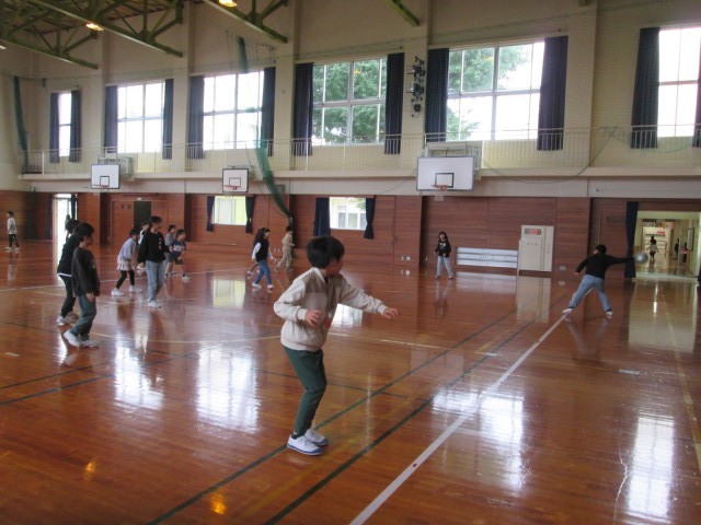 久しぶりにドッジボールを楽しみました。仲良く遊んでいます。