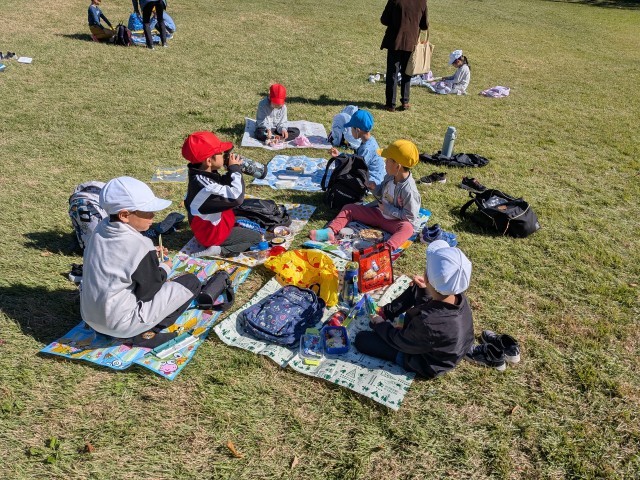 1.2年 遠足⑦ 公開日 2025/10/24 更新日 2025/10/24 学校の様子 天気がよいので、お昼ごはんは芝生広場で食べています。保護者のみなさま、準備ありがとうございます。子どもたちは、おいしく食べています。