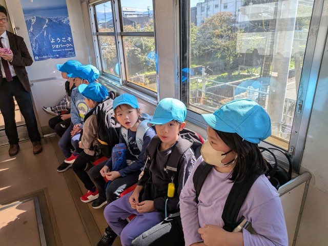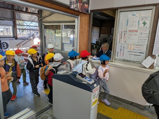 電車に乗って稲荷駅に到着しました。今から稲荷公園に向かいます。