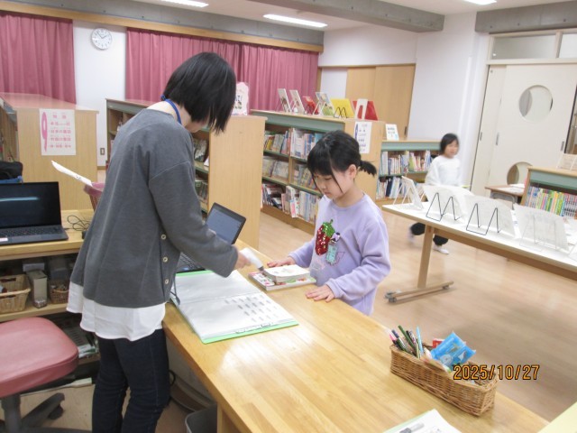 図書室の本を借りました。本を返す時も、借りる時もてきぱきとできるようになってきました。