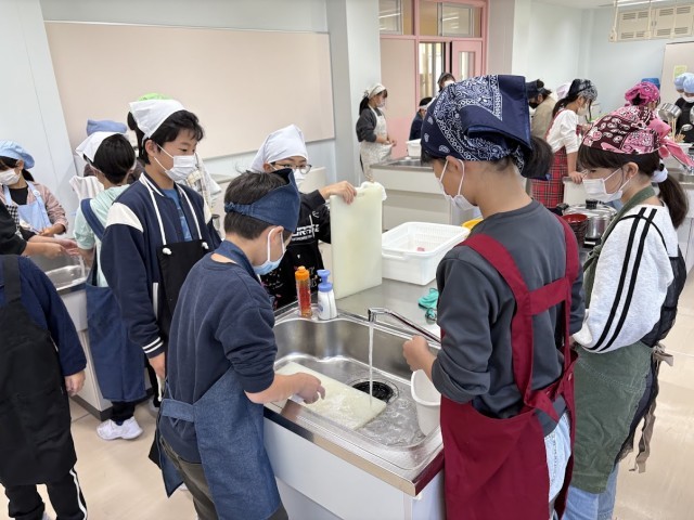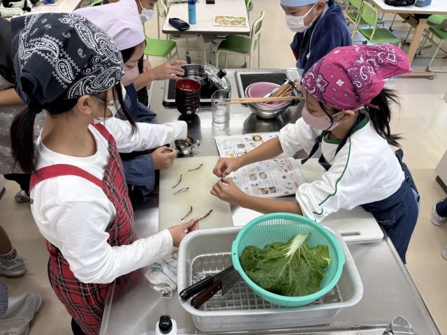 今日は味噌汁をつくりました。野菜の切り方や味噌の溶かし方等を学びました。たいへんおいしくできあがりました。