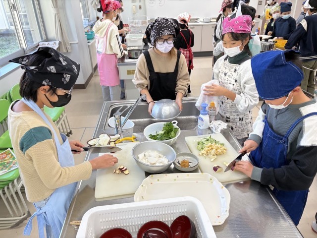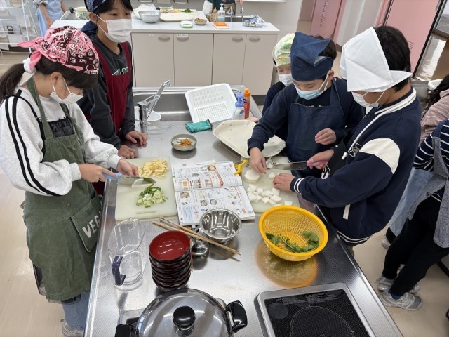 今日は味噌汁をつくりました。野菜の切り方や味噌の溶かし方等を学びました。たいへんおいしくできあがりました。