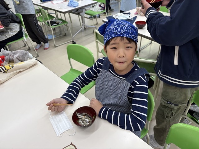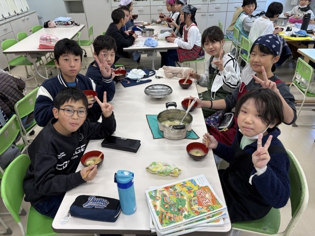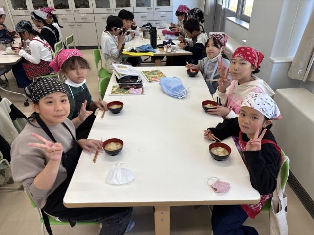 今日は味噌汁をつくりました。野菜の切り方や味噌の溶かし方等を学びました。たいへんおいしくできあがりました。