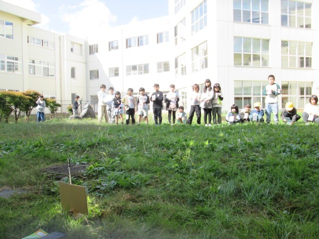 鏡で跳ね返した日光は温かいか、実験をして調べました。小さな的に光を当て続けるのはなかなか難しかったようですが、みんなの鏡で光を当てると3分間で3℃も温度が上がりました。