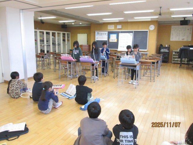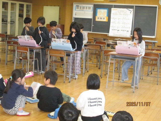 音楽の時間に、グループごとに鍵盤ハーモニカのミニ発表会をしました。グループで練習をしながら取り組んでいます。まだまだ、練習は続きますが、これからの上達が楽しみです。