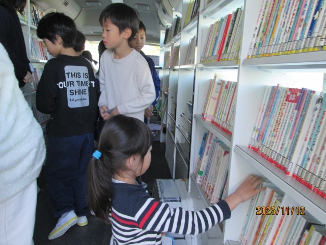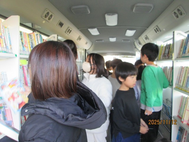 11月の自動車文庫の様子です。「今日は何の本を借りようかなあ!」毎回楽しみにしています。