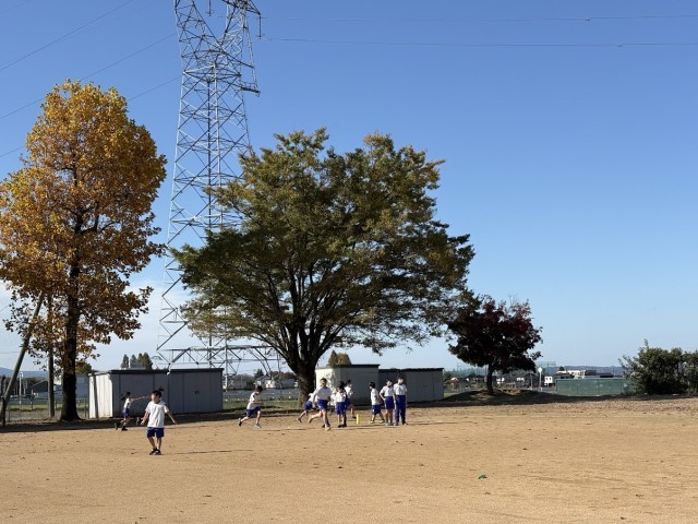 晴れた日は、走運動をしています。自分たちでラインを引いたり、ハードルを並べたりして、活動を運営しています。