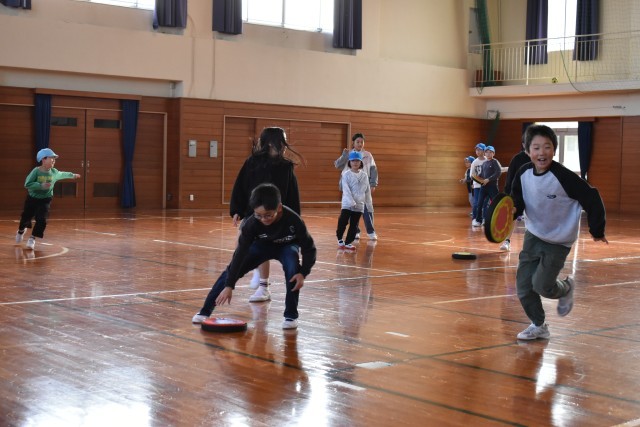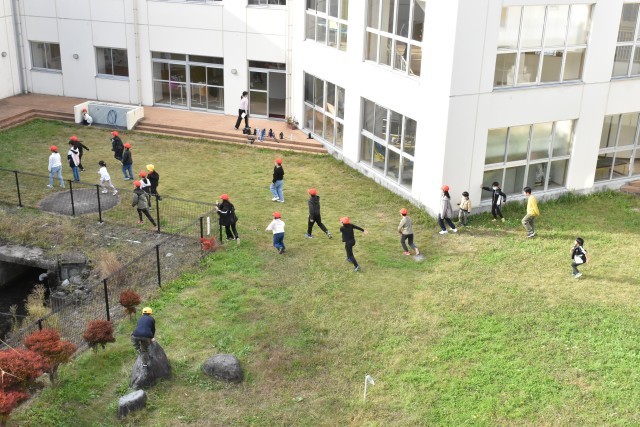 午後からは、団ごとにリクリエーションをしました。青団は体育館でドッビーをしたり、赤団は中庭で「だるまさんがころんだ」をしたりと元気に活動しました。どの子供たちも楽しそうで、なかよし度の高まりを感じました。