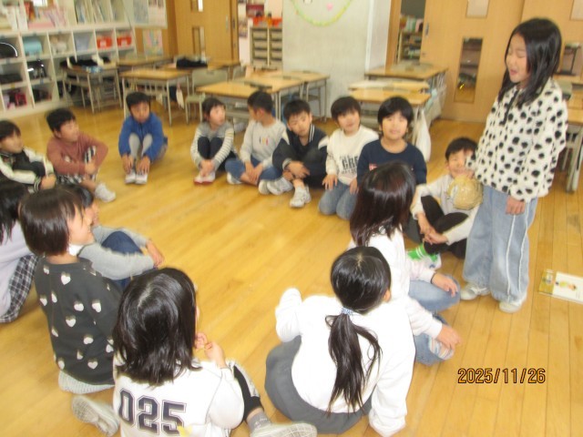 2年生は、「元気!しゅうかい」を開きました。フルーツバスケットやばくだんゲーム等、ゲームを楽しみました。「わぁー、わぁー、キャーキャー」という賑やかな声が響いていました。