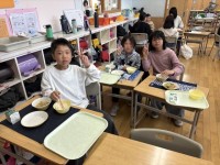 授業で取り組んだバスケットボールを楽しむ6年生。笑顔があふれるステキな休み時間です。