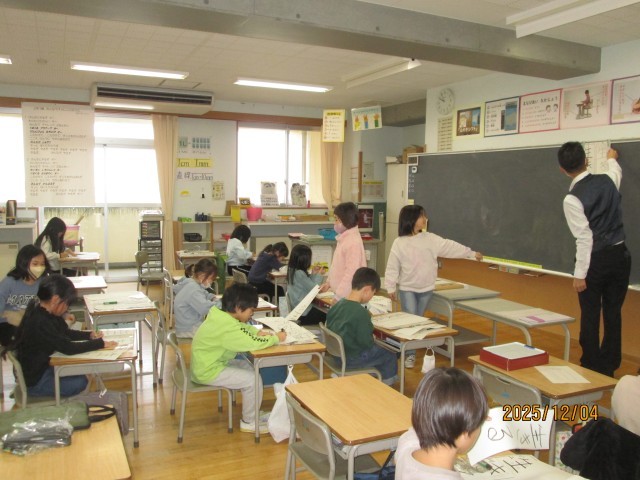 2年生 この頃の様子 公開日 2025/12/05 更新日 2025/12/05 2年生 書写の時間に、書きぞめの練習が始まりました。今年の課題は「生きる」です。硬筆ずみをしっかり持って力強く書いていました。