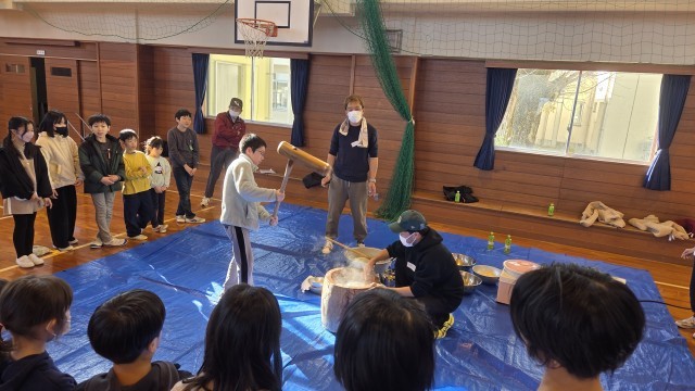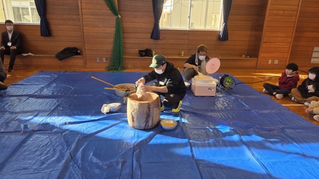 子どもたちが地域の方々と共につくおもち。太田地区全体の長〜く切れない繋がりを感じます。もちだけに。