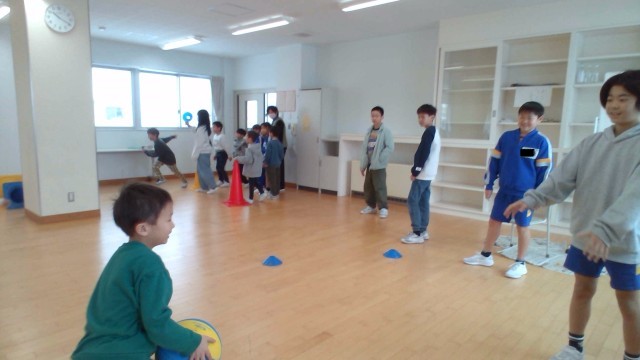 火曜日のみどりのタイムといえば「楽しく遊び隊」ですね。今日は外で障害物競走をやる予定でしたが、雪の影響でできなかったので、中で遊ぶことにしました。沢山の人がきてくれました。みんなで笑ったり、声を出したりして、とても楽しかったです。これからもみんなが楽しく遊べる活動を考えていきます。