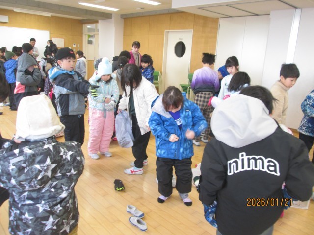 雪っ子遠足が大盛況のうちに終わりました。それまでに3年生さんを中心にして、顔合わせやスキーウエアの着脱練習、グラウンドで雪上の上を歩くなどの練習などを行ってきました。回を重ねるごとに、班の人と笑顔で話をする姿が見られました。雪っ子遠足当日は、一緒に活動したり、お弁当を食べたりと楽しく過ごすことができました。