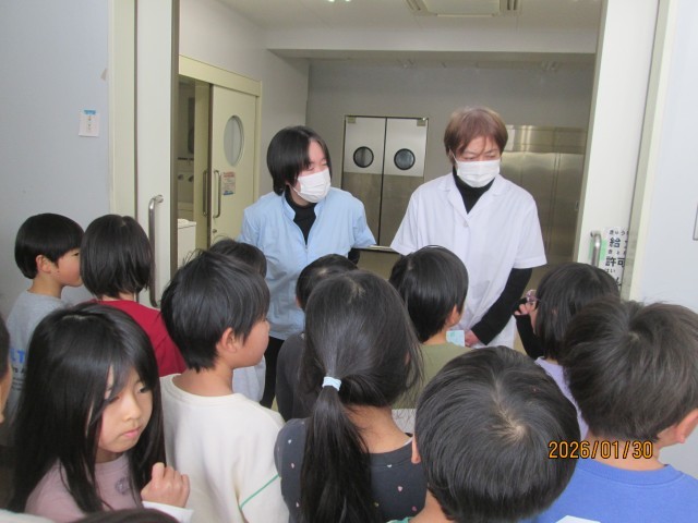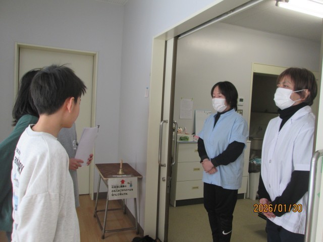 また、1年生と6年生は、給食室へ行き、直接調理員さんにお手紙を届けました。とても喜んでくださり、にこにこの笑顔になりました。