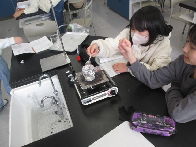 ふっとうしたときに出る湯気とあわの正体を調べる実験をしました。