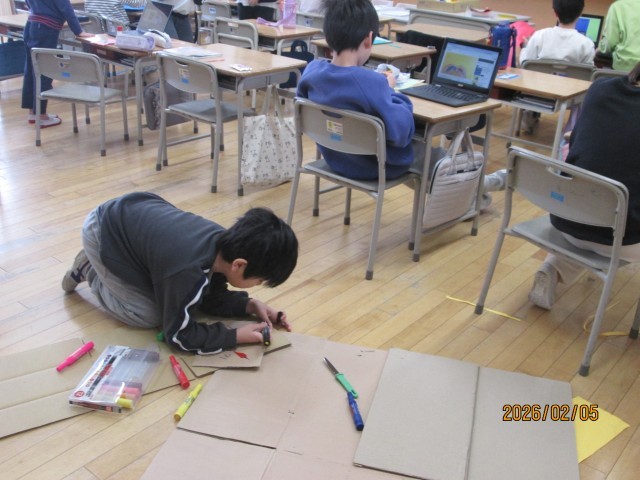 この日は、九九集会の飾りやプログラムなどを、友達と協力してつくりました。