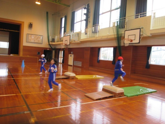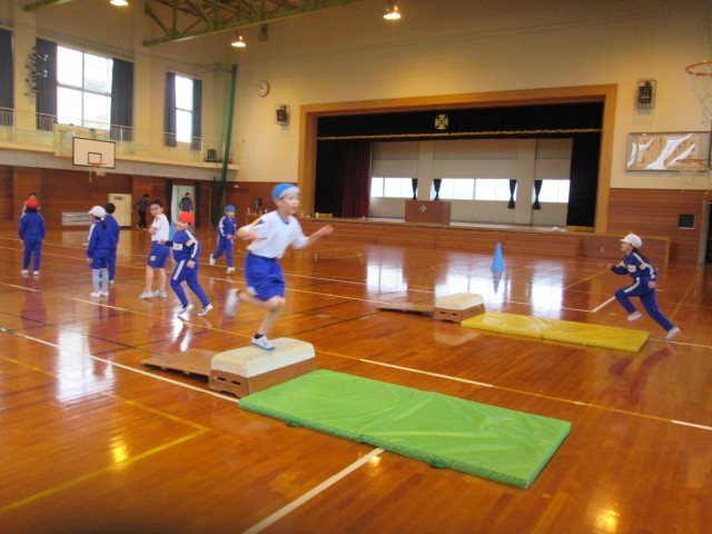 体育では、走り幅跳びにチャレンジしています。助走からリズムよく踏み切る練習を繰り返しています。