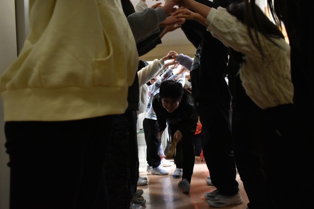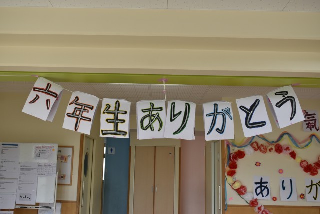 退場は大きくなった6年生には少し小さな全校アーチでお見送り。恥じらいながらも「ありがとう」といって退場する6年生。笑顔で送る在校生…いいね!
