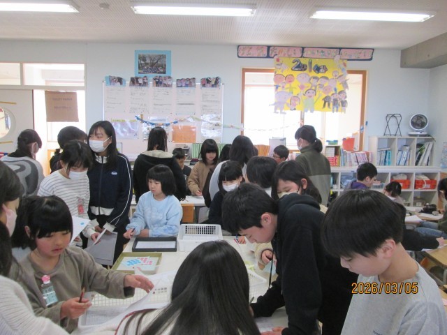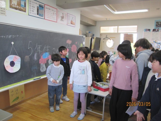 この日の九九まつりは、5年生さんがたくさんきてくれました。的当てゲームやくじ引き九九など、2年生の子供たちが張り切ってつくったものに、チャレンジしてくれました。また、新たに子供たちがつくった九九問題にも取り組んでいました。2年生の子供たちは、大喜びでした。