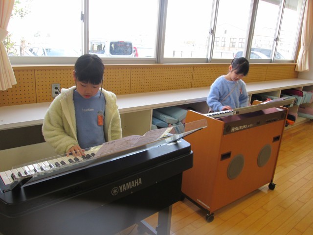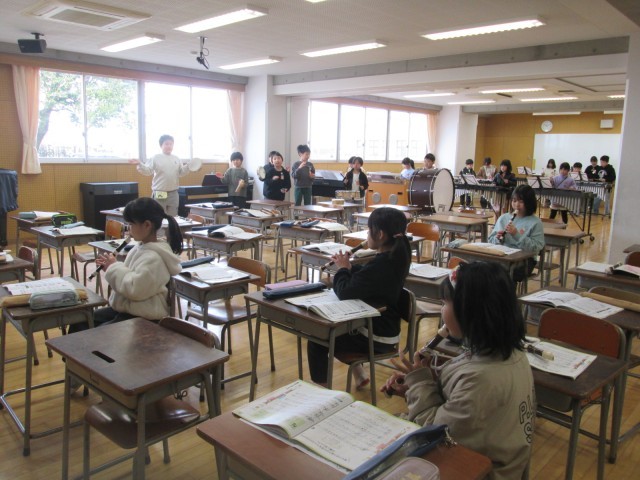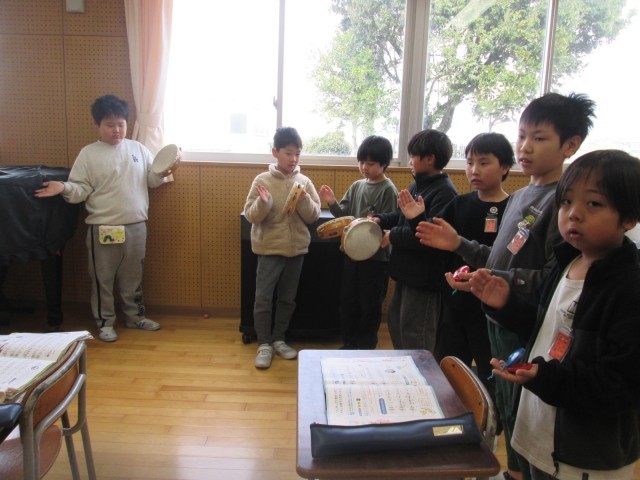 最後の音楽の授業では、「パフ」の合奏をしました。いろいろな曲や楽器にふれた1年間でした。