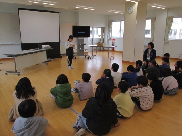 2年生さんに、3年生の学習を楽しみに思ってもらえるように、クイズを取り入れたり、一緒に英語の歌を歌ったりして楽しみました。4月からは、同じ中学年の仲間になります。運動会や音楽会などで力を合わせて頑張っていってほしいと願っています。