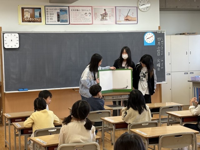 今日は白団の6年生が朝の準備の手伝いや読み聞かせに行きました。