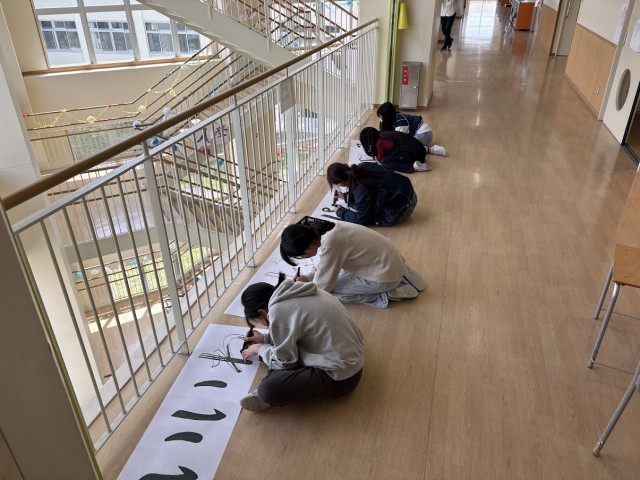 お昼休み、教室横を見てみると…なんということでしょう。ステキな6年生が黙々と児童会スローガンの掲示をつくっていました。学校のために動ける6年生。いいね!