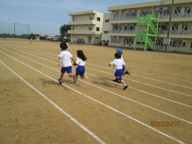 2年生 体育の時間 公開日 2026/04/19 更新日 2026/04/17 2年生 今日の体育は、1年生さんと行いました。2年生が前に出て、準備体操を行った後、50m走のコースを一緒に走りました。「こっちだよ」と声をかける姿も見られ、頼もしく感じました。
