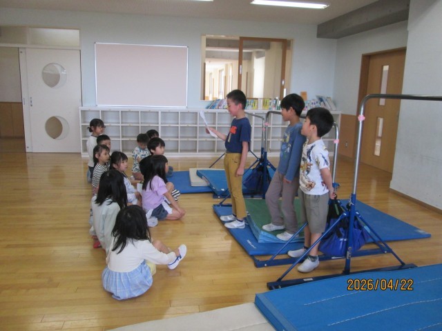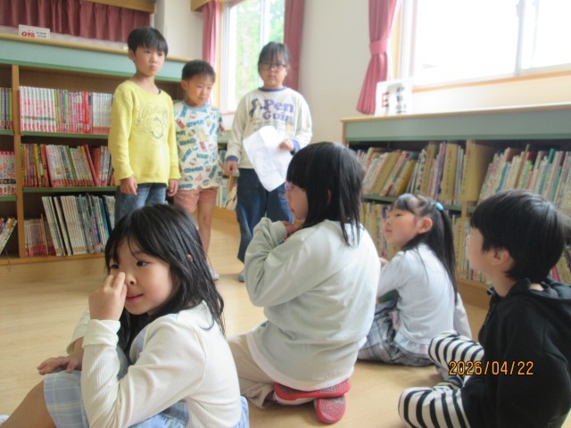 2年生 なかよし集会3 公開日 2026/04/22 更新日 2026/04/22 2年生 図書室やみどりのルームでは、それぞれ、担当の子供たちが、図書室のおすすめの本や、鉄棒の使い方について説明しました。1年生さんの前で堂々と伝えていました。