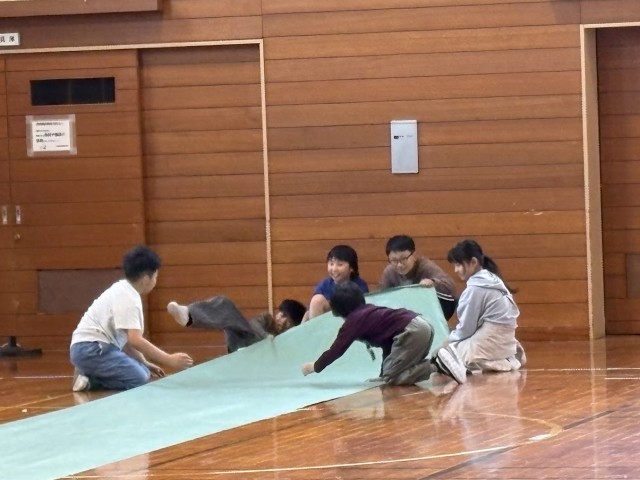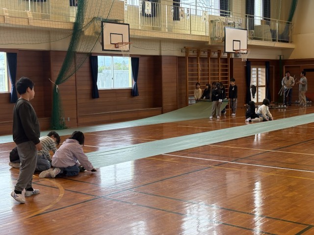 自転車安全教室の片付けをしました。重たいマットと格闘する姿にいいね!
