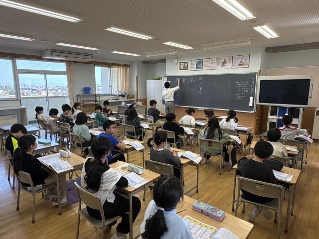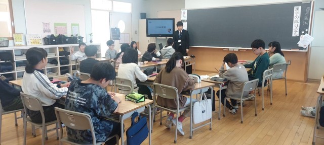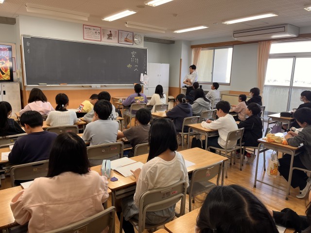 いつもと違う雰囲気での授業でしたが先生の話を聞く姿はすっかりお兄さん、お姉さんでした。