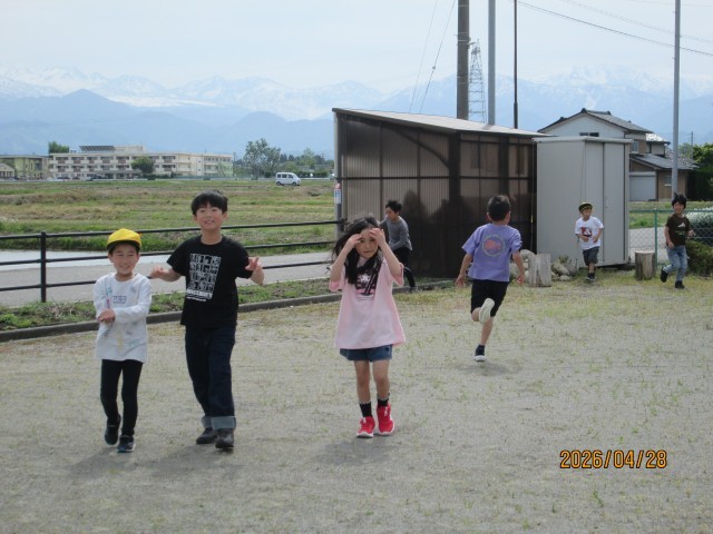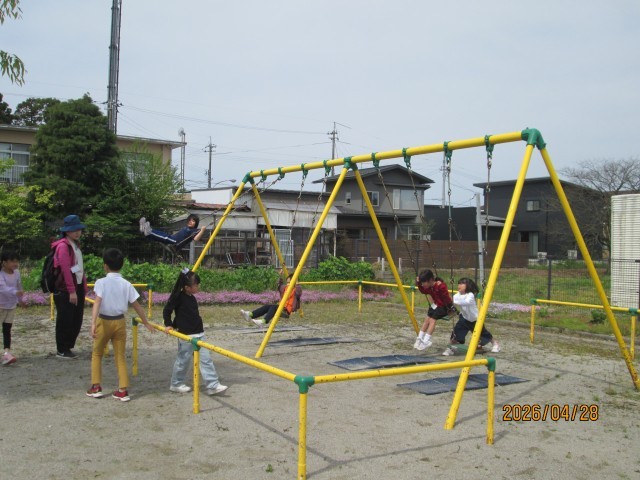 1年生さんと一緒に、太田南町公園へ行きました。公園では、遊具で遊んだり、鬼ごっこをしたりするなど、思い思いに楽しみました。1年生さんをリードしながら、遊びました。